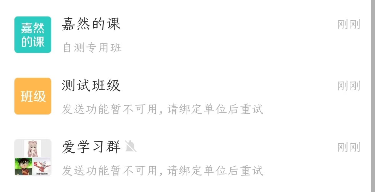 打开学习通 App 的聊天页,课程是绿色图标,班级是黄色图标,群聊是学生头像拼接。